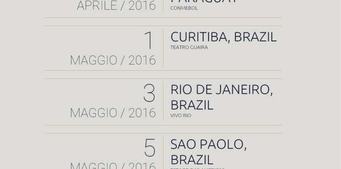 O trio retorna ao Brasil em Maio/2016 com o show "Grande Amore" em São Paulo, Rio de Janeiro e Porto Alegre.